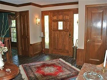 Beres quality & custom built, country Tudor manor, sits on 3 acres w/wooded & private backyard. Gourmet kitchen has granite counters, Schrock cherry cabinets, cherry stained wood floors, SS Viking range/double ovens & island w/breakfast bar. Kit also incl: lg eating area & keeping rm that leads to lg decks. 2-story family rm w/frplc, formal living & dining rms & 1st flr laundry rm. Possible 6th Bdrm currently being used as office. An addition offers a separate suite incl: 2 bdrms, loft w/frplce & bath. Lower level incl: rec rm w/wet bar, bonus rm & walk-out. Enjoy entertaining & relaxing by the beautiful inground swimming pool & patio. Backyard is partially fenced. Large 3 car garage w/storage space.