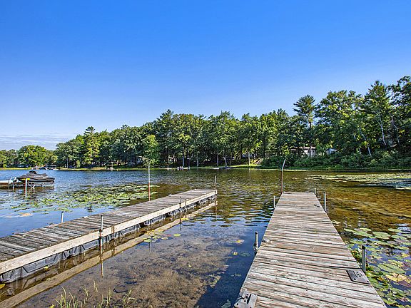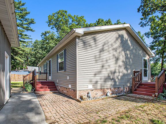 Move in ready! 3 bedroom, 2 bath. 90 ft of water front on an all sports lake with 2 docks! 40 min drive to Grand Rapids!Huge deck overlooking backyard & lake. Open kitchen, big bedrooms, large bathrooms with primary ensuite, new black top driveway, new sidewalk & approach, new drainfied, new gutters with leaf guard(lifetime warranty, 2 car 20x24 well insulted unattached garage, large polebarn 30x40 with floor drain, cornor lot with frontage on both roads, Transferable home warranty, Newer Generac guardian 16kW generator that house, polebarn & garage, wellhouse are wired to. Wellhouse has cement enclosure with bladder being 6 foot undergroud for easy access, appliances stay (range, microwave, refrigerator, dishwasher) New survey availiable, window dressing & ceiling fan stay,2004 modular
