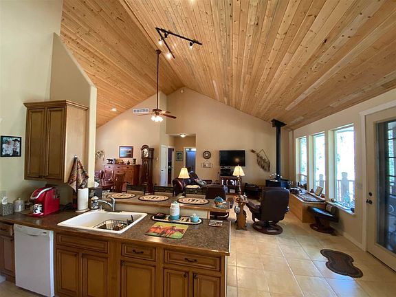 Custom 2009 approximately 2,321 sq ft (1,880 sq ft heated), 3 bedroom, 2 bathroom home on 1.85 +/- deeded acres. 21 ft X 21 ft (441 sf ft) attached garage. Large rear covered deck with recessed lighting and easy access to landscaped and dog fenced rear yard, with views and close proximity to the Cimarron River. Property is off blacktop and has gate leading to Cimarron river within the highway right of way. High quality finished property with large open plan living area and huge picture windows off the living/dining/kitchen area to the rear covered porch. Many special touches and features throughout including new propane powered generator to always keep the home ready for when you plan your next ski trip. Drive in and unload in the attached garage with easy access to the house interior. The home comes furnished and would be a turn key property for this ski season.