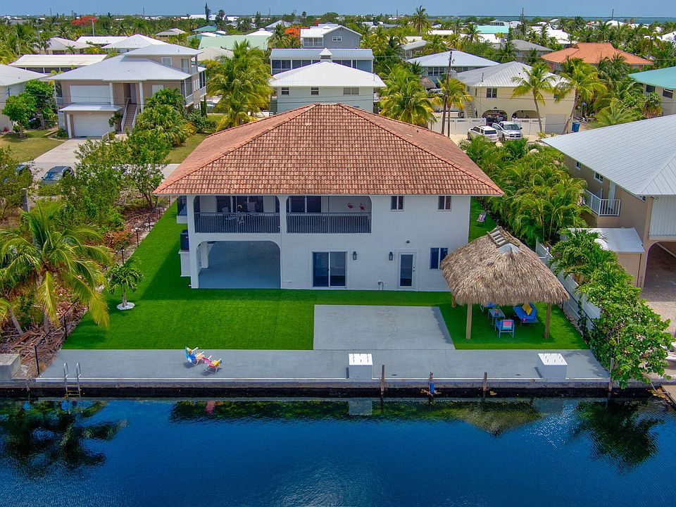 LOOKING FOR A KEYS HOME WITH SOLID CONSTRUCTION? Check out this updated, 3BD/2BA CBS home in desirable Pine Channel Estates where you'll enjoy low maintenance living just 30 miles from Key West. Impressive interior updates include 32''x 32'' porcelain tile floors throughout and a streamlined kitchen with beautiful quartz counters and great cabinet space. The large, screened porch provides extended outdoor living, and can be accessed from both the living room and master suite. Offering nearly 1600 sq. ft. of living area upstairs, the home's ground level has hard-to-find 992 sq. ft. of garage space plus 310 sq. ft. of storage opening to the back yard. Poured concrete floors as well as impact resistant windows and doors make this home feel like a fortress. The 46 ft. wide canal provides access to both the Atlantic and back country; 75 ft. of concrete seawall and davit pads. No need for a lawnmower... the high-quality, artificial grass lawn looks neatly manicured without effort! An inviting tiki hut, 4-hole putting green and the recent addition of a paver driveway are the finishing touches to this exceptional property. Your favorite fishing and dive spots are within easy reach by boat - come live the Keys life!