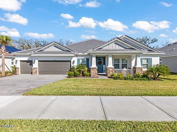 Experience luxury living in the gated Windchase section of Halifax Plantation with this stunning Taylor Morrison Abaco floorplan featuring 4 bedrooms, 3.5 baths, a study, formal dining room, and a spacious media/flex room. The open design centers around a large gathering room that flows seamlessly to the gourmet kitchen with Timberlake Maple Slate cabinetry, Cambria quartz countertops, GE Café appliances, and a generous casual dining area. Triple pocket sliders lead to a covered lanai overlooking a private wooded buffer. The primary suite offers dual vanities, a garden tub, a walk-in shower, and an oversized walk-in closet. Additional highlights include a 4-car garage with a tandem bay and a mini-split AC unit, a 50-year roof, and a pavered driveway. Completed in 2025 and used only as a vacation home, this home is better than brand new! Halifax Plantation is known for its peaceful tree-lined streets, championship golf course, elegant clubhouse with dining, fitness, and tennis facil ities, and miles of walking and biking paths, offering a refined yet relaxed lifestyle just minutes from the beach and I-95. At the time of listing, this is the best value of a home offering 3,200+ sq ft in the Halifax Plantation/Plantation Bay area, an exceptional opportunity to own a nearly new home in one of the area's most desirable communities. All information taken from the tax record, and while deemed reliable, cannot be guaranteed.