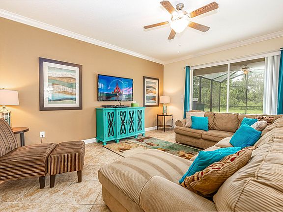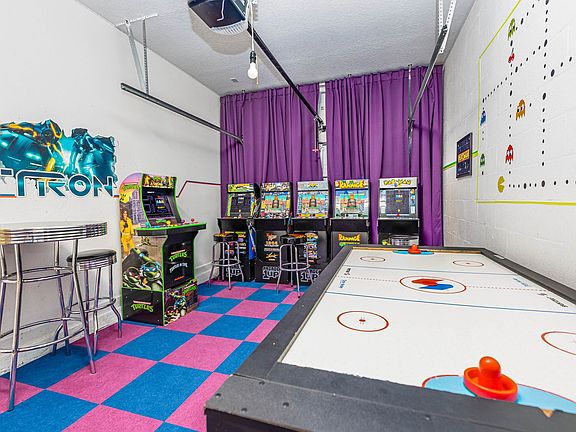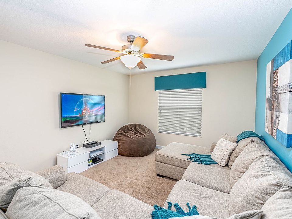 Built as a tropical oasis and a refuge away from the hustle and bustle of nearby attractions, this Paradise Palms Resort single-family home allows you to enjoy some of the best entertainment in the world while living in a relaxing full-service resort environment. Beautifully and professionally furnished in contemporary design with many upgrades by the owners, this fabulous 2-story home boasts a private pool with a covered and screened lanai. Located at the corner of the street, this property has a large space and receives a great amount of solar light throughout the day. Come home from an exciting day at the attractions and hang out by the pool to relax and watch the kids splash in the water. Pool towels and pool chairs are provided, and you can also enjoy the game room with six arcade games, an air hockey table, and two video games located in the loft. Highchairs and strollers are available. The downstairs area features a fully equipped kitchen with stainless steel appliances, including a refrigerator, range, microwave, and dishwasher, along with granite counters and a breakfast bar. The living room offers a large flat-screen smart TV with access to streaming channels such as Netflix, Disney, Amazon, HBO, and more. The private screened-in splash pool with a covered lanai and patio furniture can be heated for an additional charge. The dining area includes a breakfast bar and a barbecue grill is available for use for an additional charge, though propane gas refill is not included. The game room includes six arcade games and an air hockey table. Pool heat is available for $50.00 per day and needs to be purchased for the total length of the stay, requested at least 7 days prior to check-in. The BBQ grill is available for $60, with propane gas refill not included. Paradise Palms Resort amenities and services include a sauna, jacuzzi, lounge area, water slide, sundry shop, game room, walking trail, video arcade, fitness center, kids play area, poolside tiki bar, concierge service, a 50-seat movie theater, a huge resort-style pool, snack machines, and ATM. The resort is close to top-rated golf courses and offers massage and concierge services for an additional charge. Volleyball, tennis, and basketball courts are available, and the gated community has a 24-hour attendant. The beach-entry pool is perfect for families with little ones, and there is a children's play area with a multi-deck climbing frame with slides and swings. No visit to Orlando is complete without a trip to the seashore, with great beaches on the Atlantic Ocean only about an hour away. The property also has a beach kit with an umbrella and two beach chairs. No parties or events are permitted. Check-in is at 4 pm and check-out is at 10 am. The home is non-smoking and absolutely no pets are allowed. Violation of this term will incur a charge against the security deposit for the reservation of $400.00 minimum. Starter supplies include one roll of toilet paper per bathroom and small hotel-size bar soap in each bathroom. Items of personal hygiene, dish soap sponge, dish detergent for the dishwasher and laundry detergent, and garbage bag are provided. There is no daily housekeeping service provided at the rental rate. Before check-in, the unit will be thoroughly cleaned and inspected by a professional cleaning company. Clean sheets and towels will be available in the unit. Mid-stay cleaning services during your stay can be requested for an additional fee. This house is self-catering. Although welcome amenities are provided, it is recommended to stop by the nearest supermarket to purchase additional personal toiletries and desired meals. As per Florida law, open food cannot be left in the refrigerators or kitchen closets, hence all food items will be removed after check-out and no supply of items such as condiments or coffee powder will be provided before check-in. Excessive required cleaning or a double clean is charged $100.00.
