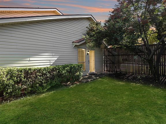 Beautifully updated corner-lot townhome that does not share walls with neighboring units! This home features split bedrooms with two full baths and numerous updates, including French doors replaced in September 2025, HVAC replaced in 2020 and serviced in October 2025, water heater replaced in August 2025, kitchen cabinets, walls, and ceiling repainted in October 2025, entry garage door replaced in October 2025, new ceiling fans installed in June 2025, and a new refrigerator added in August 2025 (negotiable to stay with the property per buyer’s interest). Additional highlights include upgraded windows, fresh paint throughout, new flooring, and a private gated entry beyond the wood fence. Inside, enjoy a stylishly painted brick fireplace, furniture-style vanities, and designer tile accents in the bathrooms. The HOA maintains the front yard, and the community offers a pool and playground just down the street. The lush backyard features mature trees, a patio, and plenty of space for pets. Seller to replace the roof—don’t wait, this one won’t last long!