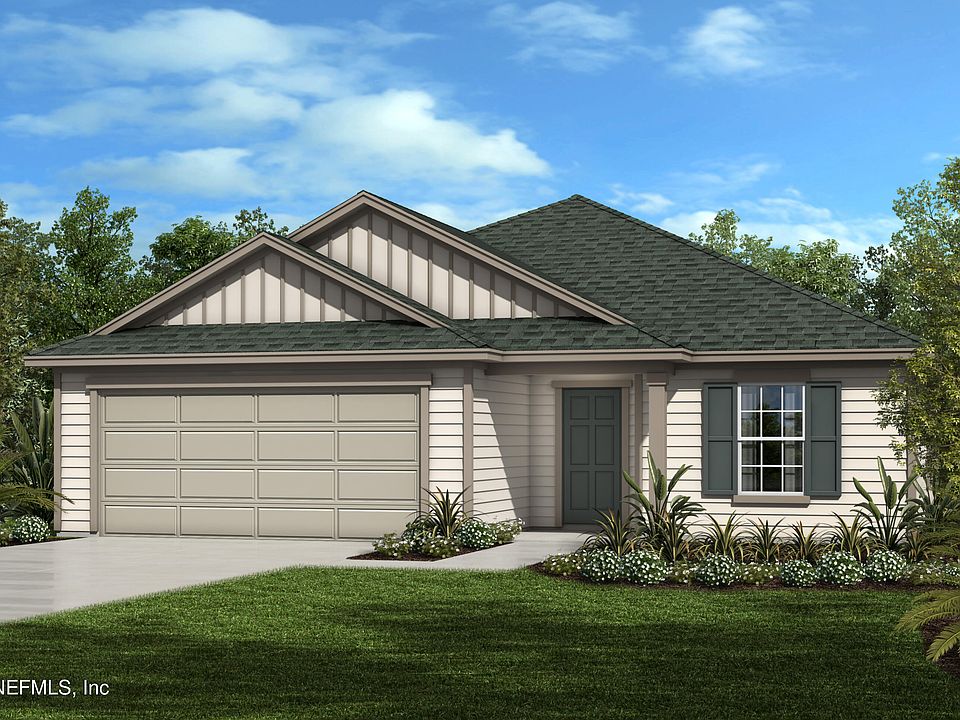 This wooded view home features 4 bedrooms, 2 bath and a 2 car garage. The open floor plan showcases volume ceilings and a spacious great room. The kitchen boasts white Woodmont® 42-in. upper cabinets, wet island and Whirlpool® stainless steel appliances. The primary suite features a large walk-in closet and connecting bath that offers quartz countertops and a dual-sink vanity. Other highlights include dedicated laundry room, covered patio, ENERGY STAR® certified lighting, Moen® faucets, Kohler® sinks and smart thermostat. KB Home at Anabelle Island pool, dog park and playground are now open! Anabelle Island is a premier natural gas community, offering residents the ability to cook, do laundry, and enjoy hot water heating with natural gas. Closing cost assistance available on this home.