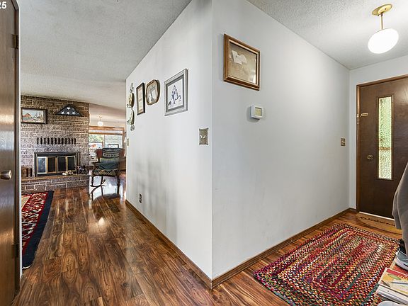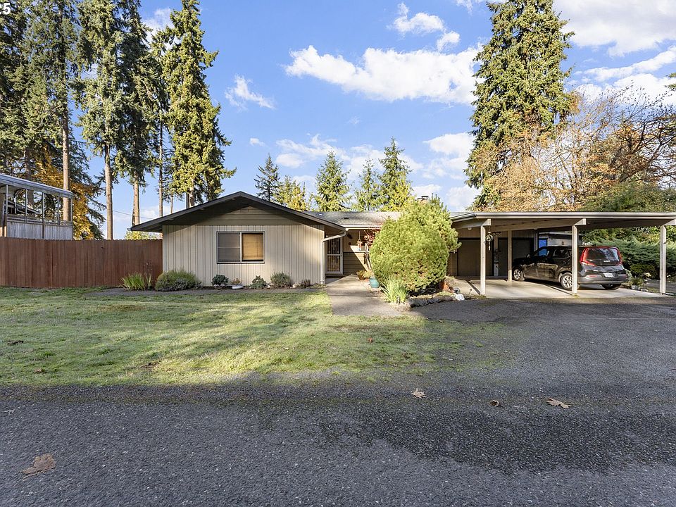 This charming single-story ranch home offers comfortable, single-level living on a spacious 0.29-acre lot, featuring seasonal, peek-a-boo views of the majestic Columbia River and surrounding mountains. Built in 1964, this inviting 1,604 sq ft, 4 bedroom, 1.5 bath residence expertly blends classic appeal with modern updates. Nestled on a quiet bluff, you can watch river traffic from the backyard, with potential to thin trees for a complete panoramic view of the Columbia and Lewis and Clark Bridge. The location is excellent, being less than a mile from Rainier Riverfront Park. This incredible neighborhood asset offers a fantastic river view, walking/running paths, restrooms, fountains, a Little League field, basketball/tennis courts, a skateboard park, and a playground, all within a short walk to the boat launch, marina, restaurants, and local businesses. Inside, the home offers accessibility with wide doorways and hallways. Newer laminate flooring flows through the entry, dining, and spacious living room, complemented by period charm designer lighting throughout. The updated kitchen features stainless steel appliances, new counters, and a modern backsplash. For warmth and character, the home includes two wood-burning fireplaces. The primary suite has a convenient half bath (with easy full bath conversion potential), and three additional bedrooms and a full bath complete the interior. The exterior maximizes the lot with a two-car covered carport and a large, expansive covered back patio off the dining room, perfect for year-round entertaining. The fully fenced yard includes raised garden beds. A highly useful detached finished outbuilding presents an excellent opportunity for a workshop, storage, or potential Accessory Dwelling Unit (ADU) (buyer to verify all data). This well-maintained ranch is a desirable opportunity for single-level living in a fantastic community!