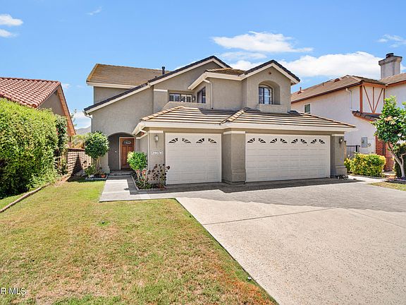 Sought After Chateau Springs neighborhood. This is a Silver Valley home, Plan ONE. 2,937 square feet per assessor. 5 bedroom, 3 full bathrooms. One bedroom and one Bathroom downstairs. Soaring 2 story tall ceilings in Entry and living room. This home features engineered hardwood floors throughout the house as well as white plantation shutters throughout as well. Large formal entry foyer greets you as you enter this stunning home. The large formal living room and separate formal dining room are perfect for entertaining and large holiday dinners. The entire rear portion of the house is a grand open concept Kitchen and Family room area with a cozy fireplace. The kitchen features beautiful slab granite counters with full backsplash with peninsula counter and breakfast bar, Stainless steel cook top, oven, microwave, dishwasher, stainless steel refrigerator, large pantry and menu planning desk. Completing the downstairs is a full bedroom, bathroom and separate laundry room. Ascend the grand staircase and you reach a sumptuous primary suite with a second fireplace and numerous windows flooding the room with natural light. Attached is the spa like primary bathroom with separate tub and shower , dual vanities, dressing area and double walk in closet. Completing the upper level are 3 additional bedrooms and a large hall bathroom. One secondary bedroom has a private outdoor balcony. Completing this lovely home is a large 3 car garage, private back yard with a covered patio and a grassy area. The neighborhood features the coveted Forest Cove Park with basketball courts, baseball diamond, children's play equipment, walking trails and picnic areas. All of this in the award winning Las Virgenes School District......