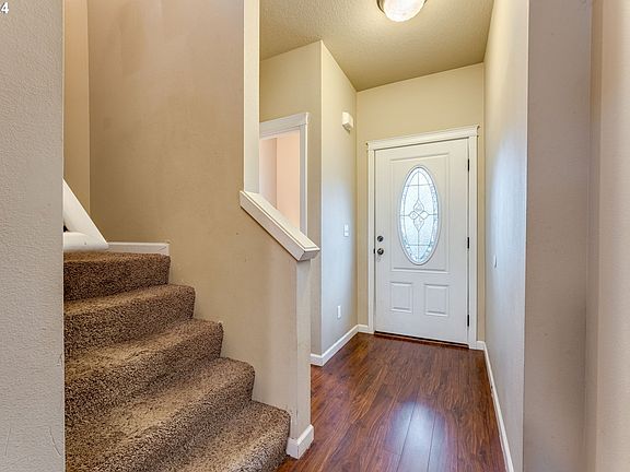 This residence is eligible for 100% USDA financing, offering convenience and affordability. It features a low-maintenance, fully fenced yard and wood laminate flooring throughout the main level. The living room is enhanced by a cozy electric fireplace with a mantle, creating a warm ambiance. The kitchen itself is equipped with abundant cabinetry and stainless steel appliances, making meal preparation a pleasure. Adjacent to the kitchen, a cheerful dining area provides ample space for a farm table and buffet. Ascending the stairwell, you'll find the bedrooms, including a vaulted primary suite with a spacious closet, double sink vanity, and a convenient step-in shower. The second and third bedrooms are generously sized and share a large full bathroom with a shower/tub combination. Also on the upper level is a large multi-functional loft area. Conveniently located, this home offers easy access to Forest Grove's Downtown Farmers Market, as well as the nearby Aquatic Center and Pacific University, making it an ideal investment property. Don't let this opportunity pass you by, schedule a viewing today!
