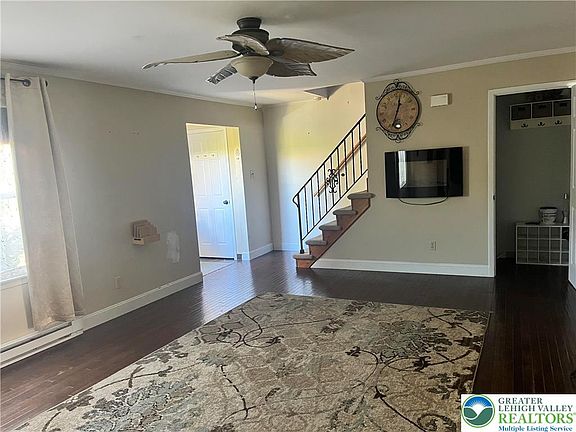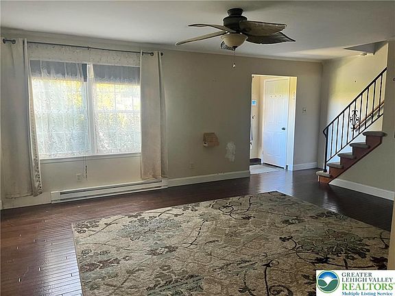 Beautiful twin home located in the heart of Northampton, close to amenities. The main level features hardwood flooring and sliding doors that open to a covered deck-perfect for grilling and overlooking the pool. The updated powder room is conveniently located off of the kitchen. Upstairs, you'll find three bedrooms, including a spacious primary bedroom with two lighted mirrored closets. The second bedroom offers a small lighted walk-in closet, and the third bedroom includes a lighted closet as well. The full bathroom features a double sink vanity and a new ventilation fan. The partially finished basement has a wood-look porcelain tile floor, decorative ceiling tiles, recessed lighting and sconce lighting. The large laundry room offers a washer, dryer and a handcrafted cabinet with a large stainless steel utility sink and a sink-ideal for washing hair. There's also a bonus room with a locking door which could be used for additional storage or a home office. The basement walks out to a closed-in workshop area, and access to the porcelain-tiled patio that leads to the 15' round saltwater pool with deck. The fenced in yard includes a storage shed. Come and see if this home is meant to be yours.