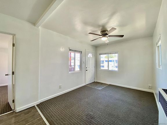 Learn more Fully remodeled unit in a 4-plex, featuring updated electrical, plumbing, bathroom, and windows. Located off 30th Street on a cul-de-sac, it includes off-street parking spots, community coin laundry, tile/vinyl/carpet flooring, and LED ceiling fans throughout. Approximate room sizes: Bedroom 1 (8x11), Bedroom 2 (8x9), Kitchen (5x7), Living Room (11x12), Dining Room (7x11). Golden Hill borders Balboa Park and South Park, offering quick access to downtown and public transit. Known for historic charm, diverse architecture, and scenic views. The area features local dining, shops, and landmarks like the Turf Supper Club and Villa Montezuma. The 25th Street Bridge includes a unique musical "song rail" art installation by Roman de Salvo and Joseph Waters. Move-In Special: $500.00 Off the First Month's Rent. Must move in by Thanksgiving, November 27, 2025. Monthly rent includes water, trash, two reserved off-street parking spaces, and access to coin-operated laundry. Tenant pays gas, electric, phone, and internet. $50 credit check fee required per adult applicant- minimum credit score requirement of 620. Service/support animals require adequate documentation. Renter's insurance is required.