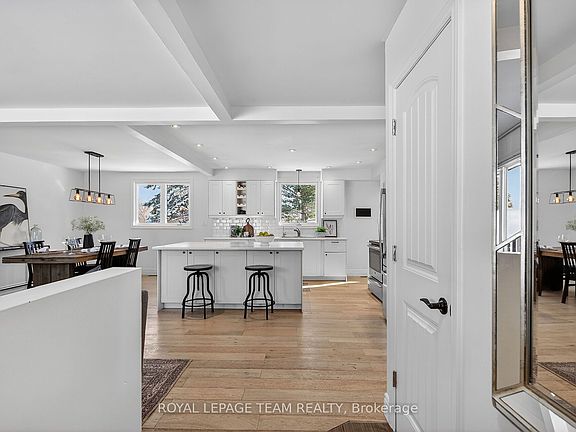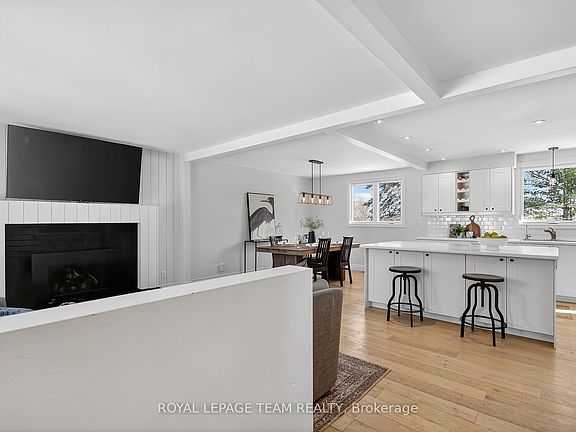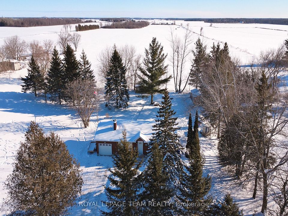 Welcome to this fully updated bungalow set on a picturesque rural property just minutes from Richmond and within easy commuting distance to Ottawa. This well-maintained 2-bedroom home offers a balance of peaceful country living and modern convenience. The main level has been renovated with an open concept layout to create a bright living space finished with engineered hardwood flooring throughout, smooth ceilings, updated interior doors, baseboards and casings, and a welcoming foyer with closet. The stunning updated kitchen features an island with an extended breakfast bar, and crisp white cabinetry. Thoughtful storage includes both linen and pantry closets in the hallway, while the living room features a shiplap accent wall surrounding the cozy fireplace, adding warmth and visual interest. Exterior doors have also been updated for improved efficiency & curb appeal. The partially finished basement provides excellent future potential. Basement walls have been spray-foam insulated, allowing for a warm, dry lower level and the future potential of a 3rd bedroom & a spacious recreation room to expand the living area. Additional upgrades include an updated main bath, topped-up attic insulation, an updated breaker panel, a furnace installed approx 2019, hot water tank 2018, updated windows (approx 2008) and a new roof (2023). Outdoor living is a highlight of the property, featuring a front deck (2023), raised garden beds, and a large two-tier rear deck overlooking open green fields-perfect for low-maintenance outdoor enjoyment or entertaining. The private yard is framed by mature trees, while an Amish shed w/60-amp electrical service offers excellent space for a workshop, hobby area, or additional storage, along with a 2nd storage shed on the property. A single-car attached garage and driveway provide ample parking. This updated bungalow offers turnkey living, flexibility, and room to grow on a generous rural lot, all while remaining close to amenities and commuter routes.