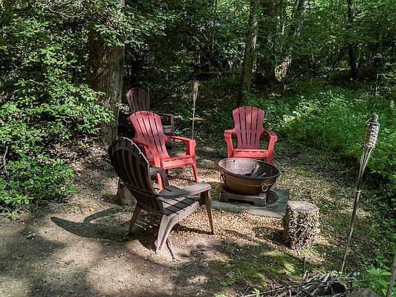 Grand stone fireplaceRich hardwood floorsStunning stained-glass windowLush wooded lotGas cookingCozy curated mountain-lodge vibeSolid wood cabinetry
