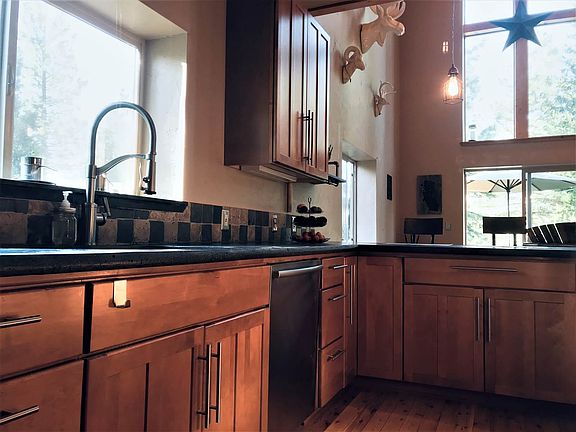 Gorgeous Custom Home in the Lost Sierra. Great room boasts 32 ft vaulted wood ceilings, Australian Cyprus hardwood floors, large wood burning stove flanked by glass sliding doors to the raised, brand new Trex, deck. Open living room, kitchen, dining room for entertaining. Kitchen is spacious with a center island, eat up bar, stainless steel appliances and concrete countertops. Two bedrooms and a full bath downstairs. True master suite up stairs, with vaulted wood ceilings, walk in closet, and in Suite Master Bath with dual walk in shower. Large loft for entertaining, looks over the great room with beautiful views. Walk across the bridge and enjoy the huge (720 sqft) bonus room over the garage. A propane stove will keep you cozy in the winter. Possibilities are endless for this space, family room, play room, school room, home gym, theater room, etc. The house has 2 electric water heaters and a Geothermal heating and cooling system (Air conditioning all summer) Located at the end of the private road's loop. Large gravel driveway. Grass in both the front and back yards. Fire pit, horseshoe pit, play fort, wood and storage shed, chicken coop. Live at the gateway to the lakes basin. Only minutes from Clio & Graegle. Get away from it all and enjoy all the beauty the Sierra Nevada mountains have to offer.