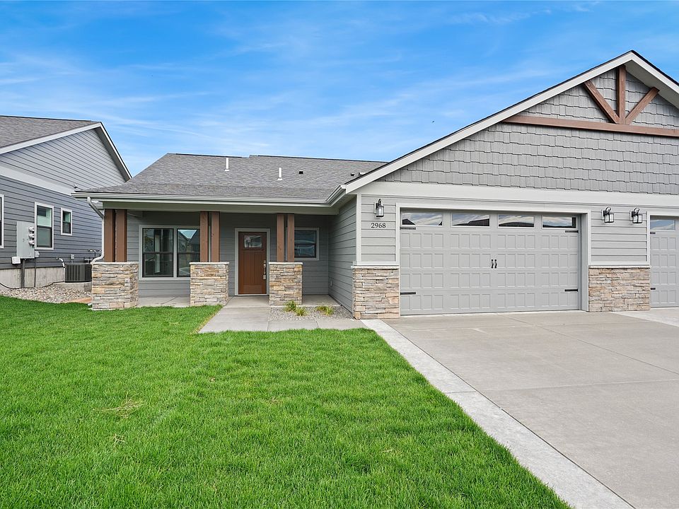Don’t miss out on this beautiful, upscale, 1687 SF, 3BD/2BA single-story condo located on a quiet city street backing onto an open space draw, you’ll never have another home directly behind you! Marvel at the gorgeous marble countertops throughout, attractive laminate flooring, designer tile work in walk-in shower and all wet areas, double vanity, soft-close cabinets, spacious raised breakfast bar, lots of cabinets and pull-out kitchen drawers, pantry, large walk-in closet --- need I go on? How about 9’ walls, 10’ tray ceilings in the great room and owner’s suite, comfort-height toilets, laundry-room cabinets and sink, and access to utilities right from the attached-2-car garage! Plus A/C is included. You’ll welcome guests at your inviting craftsman-style front porch entry and entertain or relax on your 10’ x 16’ covered rear deck right off your great room. Monthly condo dues cover landscape maintenance, exterior upkeep and insurance, sidewalk snow removal, common amenities and more. Covenants and condo rules and regulations are under documents. Association amenities include, Snow removal, Basket ball court, Dog Park, Game court exterior ,Landscaping, Management, Park, Parking, Picnic area, Trails.
