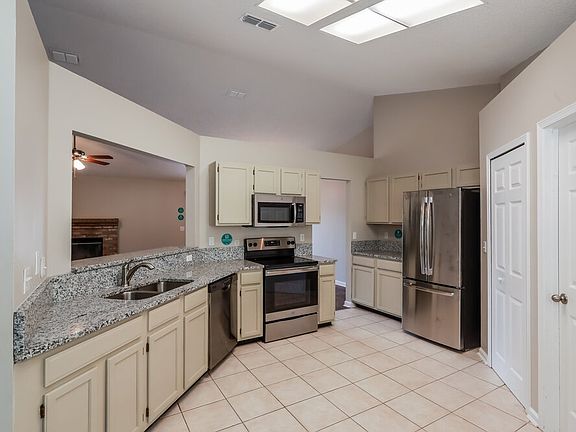 Welcome to this three-bedroom, two-bathroom renovated rental home in Orange Park. Wood-style floors create a cozy gathering space in the living room. The dining room features a sparkling chandelier and sliding glass doors for accessing the landscaped and fenced backyard. In the kitchen, granite countertops, overhead lighting and stainless appliances make it easy to cook. Enjoy a relaxing day in the master suite, where you'll notice a semicircular window, arched ceilings and new carpeting. The suite's bathroom includes a garden tub, a separate ceramic-tiled shower and oversized vanity. Don't hesitate to tour this rental home with a backyard deck and two-car attached garage.