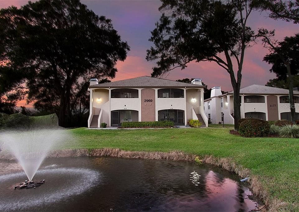 Location is PERFECT! Nestled in the heart of Palm Harbor is this beautiful second floor, two bedroom, two bath condo with a pond view. Stunning updated floors in the family and dining room along with upgraded ceramic tiled floors in both bathrooms and kitchen. The master suite includes a private bath and walk-in closet. The closet also has a crawl space for additional storage. The galley kitchen comes equipped with a nice sized pantry. The family room features a built-in fireplace for a nice, cozy feel. Welcome guests into a second bedroom or more room for kiddies, along with a second full hallway bath. A huge feature are brand new upgraded, thermal impact resistant windows throughout! This unit is cooled by an oversized TRANE air conditioning unit that has been meticulously maintained, along with a new water heater. New washer and dryer are also included and are located in a locked separate utility closet located on your screened-in balcony. New roof and newly painted exterior, are a big plus in this well maintained community. Directly in front of this unit is a retention pond with fountain which overlooks a much larger pond with a dog walk and benches if you want to get some fresh air or just relax and bird watch. As part of the amenities is an Olympic-sized swimming pool with a heated jacuzzi attached to a clubhouse for small family gatherings. Located directly behind the clubhouse is a fully stocked fitness room including treadmills, ellipticals, and stereo system to work out to your favorite tunes! Coming soon is an entryway to the Pinellas Trail for all of you bike enthusiasts along with a dog park devoted to your furry friends. Minutes away is Mease Countryside Hospital, Tampa Airport, Tampa Bay Downs Horse Track, shopping centers galore AND only 4.7 miles; a ten minute drive from one of Florida's finest beach, Honeymoon Island. An easy show, this unit will not last, so come look before it is gone!