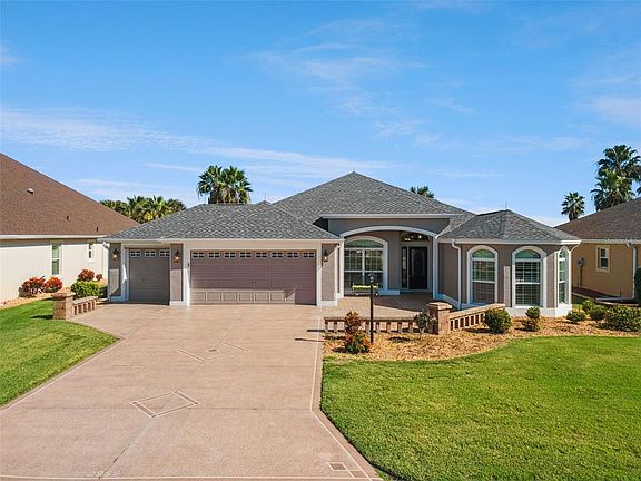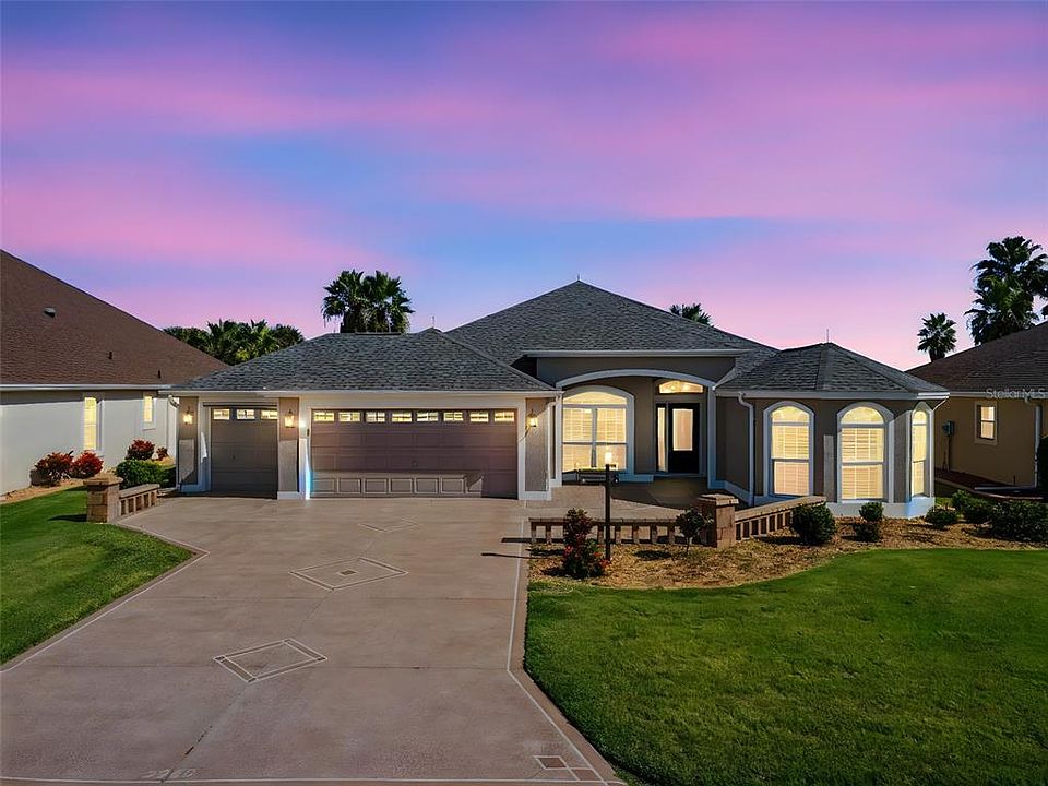 Ready to live your Happily Ever After? Well this is it! Welcome to this LUXURY, PRIVATE *GOLF COURSE VIEW* home that truly shows like a model! No Bond! Brand New Roof 2025 + Lightning Rods 2025! New Exterior paint 2025! Interior Kitchen Remodeled 2025! No Carpet! Just gorgeous Ceramic Tiles & LVP floors & even Plantation Shutters throughout! This home also has a Water Softener System for your convenience. And for location? Just minutes from Brownwood Paddock Square! *PLEASE NOTE: This home can come COMPLETELY FURNISHED.* As you walk up the custom driveway, you’re greeted with luxury landscaping and beautiful courtyard style front entryway that even has FULL FRONT POWER EXTERIOR SHADES - perfect for relaxing and enjoying the Florida weather! As soon as you walk through the front door, your eyes see straight through to the panoramic golf course views! This home features a split floorpan, so your guests can enjoy their privacy on the opposite side of the house with 2 large bedrooms with full bathroom & luxury tiled shower, giving guests and family their own wing. The front guest bedroom features a gorgeous bay window with plantation shutters. The kitchen is a chefs dream with tons of counter space, Stainless Steel Appliances, Farm Sink, Quartz Countertops with a Subway Tile Backsplash to match, custom Staggered Cabinets, and those wonderful pull-out drawers for all your kitchen needs! The kitchen counter also has that unique 3 point curve so you’re completely open to the dining room and living room - perfect for entertaining! The Master Bedroom is large overlooking the private golf course views, features an expansive tray ceiling, and has TWO WALK-IN CALIFORNIA CLOSETS with Custom Shelving & Drawers. The Master En-Suite Bath features Dual Sink Vanities with Quartz Countertops, Large Tiled Walk-in Shower, and even extra custom cabinetry for all your bathroom necessities! Finally, the best part - your lanai! The lanai has POCKET SLIDERS that go directly behind the wall, making your living space completely open. This unique and custom lanai is like a Four Season Room with glass enclosures that can easily slide open to your screens when you want to enjoy that beautiful Florida breeze! The lanai also is climate controlled with its own private AC system. Enjoy this space year round as your private oasis, where you can relax and enjoy the golf course views, and even have your own entertainment/bar area when you want to entertain your family and guests! Plus, there is even motorized hide-away screens on the patio you can use and your leisure. There’s even a SECOND screened-in lanai attached for when you want to be completely outside - especially when you’re grilling your favorite meals. The garage is large with and extra 2’ expansion PLUS golf cart garage, and tons of shelving for storage. Does it get any better than this? This PRIME LOCATION is a short golf cart ride away from all of the BEST amenities and attractions that The Villages has to offer! Close to all the best championship golf courses, and an abundance of amazing restaurants, bars, shopping, dining and dancing! Also nearby grocery stores, medical, and so much more! **Please watch our Video PLUS 3D Walkthrough of this exceptional home in one of the best locations! Call today to schedule your private tour!