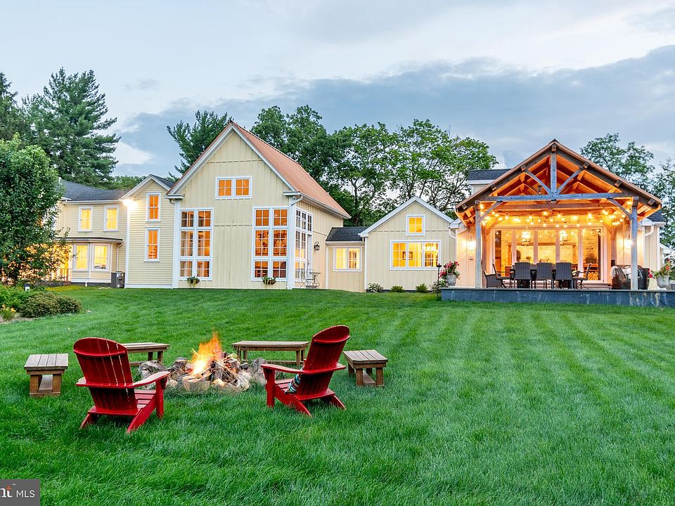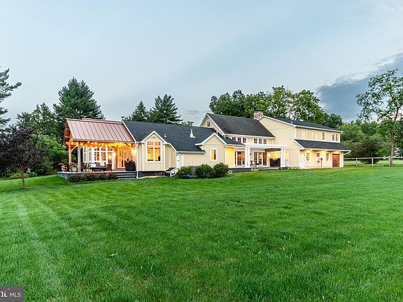 This stunning unique home is a true labor of love, meticulously renovated to seamlessly combine rustic charm of an original vintage barn with luxurious details. With a focus on quality and efficiency, every corner of this home is filled with thoughtful design choices. The main stone entry graces a bluestone landing and period style gas light fixtures leading to a stunning stone portico and is greeted by 10’ custom mahogany arched double doors that are welcoming with an inviting vineyard feel that will have you believing you are somewhere in Sonoma! The main living area boasts soaring cathedral ceilings, white oak random width floors, cozy wood burning stone fireplace and serene panoramic views. The open floor plan of the great room, dining room and kitchen is perfect for hosting guests, with post & beam, exposed rustic mortise and tenon barn details adding character and warmth. Featuring top-of-the-line appliances and two massive granite islands for ample workspace & storage and seating for eight, a huge walk-in pantry behind a reclaimed vintage barn door, and a designated zone for coffee making and wine storage, the kitchen is a chef’s dream featuring two 30" Sub Zero refrigerators with freezer drawers built into the wall of custom cabinets. A Wolf dual-fuel 6-burner range & griddle and Wolf Pro-Liner exhaust are built into a stone wall and flanked by a Mugnaini fire brick oven complete with wood storage below. Massive Nanawall glass bifold doors that open completely to a dramatic exposed beam covered bluestone patio overlooking the side & rear yards with views of the adjacent 98+ acre preserved farm next door, are all perfect for a wonderful al fresco dining experience. The original circa 1870’s farmhouse wing offers the main floor primary suite, is a true sanctuary, with an attached spa-like bathroom, having two sinks, soaking tub, travertine heated flooring & a generous glass enclosed frameless shower, 2 designer walk-in closets, a sitting area and a cozy fireplace with access to the front & side covered porches. The remaining three junior suites on the second level each have their own bathrooms and loads of closet space, providing comfort and privacy for all. A flex room, on the main level, with an en-suite bath currently used as an in-home office, has a private doorway with outside access. The gorgeous designated office space offering a wall of windows with panoramic views and a cathedral ceiling is a dream come true! The home is equipped with modern amenities including multi-zone HVAC, a security system, and WIFI-controlled sound. The six-car garage is finished and heated, having a work sink and an above loft suite that includes a spacious bedroom with sweeping views, a gourmet kitchen with soapstone counters, a spacious great room w/gas faux wood stove, a full bathroom & laundry, perfect for hosting overnight visitors or as a personal private retreat. With views of surrounding farmland, and open lots there is plenty of space for a pool, Newtown schools, and a short distance to New Hope’s restaurant scene, this home is a dream come true!