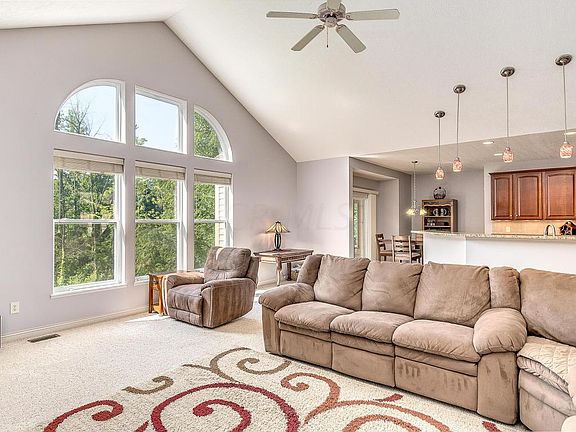 Awesome walk out ranch in Woods of Powell! Amazing 2018 finished full lower level with kitchenette and egress window for in law/teenage suite. Huge entertaining are with walk out to wooded lot. Open great room area to kitchen and 3 seasons room to wooded back yard. Totally updated owner's suite with cathedral ceiling and huge walk in shower and double sinks. The large 3 car garage is a great space. Kitchen has stainless steel appliances and island. 3 season rooms is great feature to view the wooded back yard.