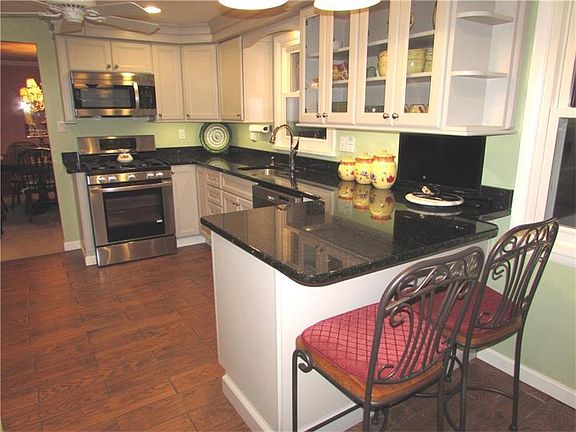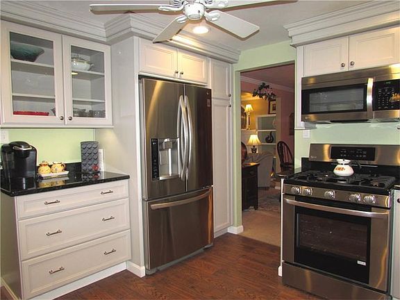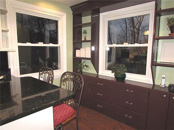 Two Story Brick Home situated at the End of a Wooded Dead End Street, whose lot backs to a Conservatory. No neighbors to the right or the back of the home. Views of Nature from the Large Back Deck are Spectacular through the Seasons. Deck has a Sunsetter Retractable Awning. There is a New Fabulous White Kitchen w/ Granite Counters, Soft Close Drawers, Wood-Look Porcelain Tile Floor, Breakfast Bar, SS Appliances, Recessed & Pendant Lighting & MORE! Family Rm w/ Gas Fireplace, Wainscoting, Built-in Shelves, Hardwood Floor & Sliders to Deck. Dec. Fireplace accented by Built-in Shelves in LR. Dining Rm w Bay Window. Master Bedroom w Updated Master Bath. 2nd Bedroom w Built-in Desk & Shelves along one Wall. Spacious Rooms. "Extra Finishes" in home such as Crown Molding, Ceramic Baths, Organized Closets, Lighted Ceiling Fans, Whole House Fan, Main & 2nd Floor Laundry Chute, & Pull Down Attic Stairs. Has Newer Hot Water Tank & a Workshop Room. Washer & Dryer Stay. Home Warranty.