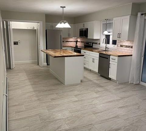 - Exterior features: Heating system: Baseboard, Lawn, Sewage included in rent, Water included in rent, custom kitchen, new appliances, stainless steel appliances