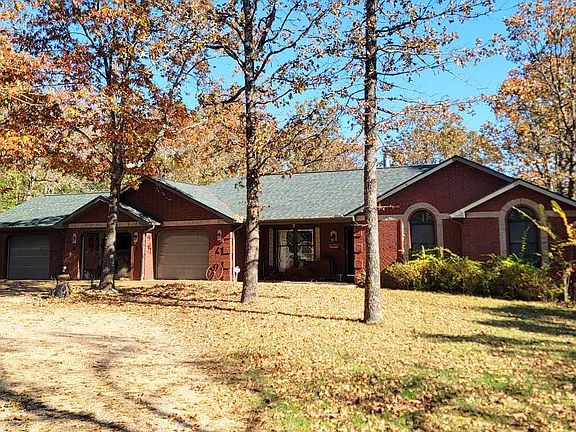 Ozark Country living at its best, brick ranch 3 bedroom 2.5 baths 3 car attached garage on 3.44 acres m/l. Paved road to the circle driveway, covered porch says welcome! Living room with vaulted ceiling boasts a free-standing wood stove to warm a chilly night, genuine wood flooring in the living areas. Spacious eat in kitchen, large bay window, custom wood cabinets & newer appliances all stay. Utility room w/ wash/dryer. Primary is totally en'suite with double tray ceiling, spa tub & walk in shower, 2 sinks, large walk-in closet. Beds 2 & 3 share full hall bathroom. Formal dining rm. has tray ceiling, a huge sunroom off french doors offers nature views. Elevated wood deck off back of home for your grill. A 20x30 detached red barn w/power & concrete floor, gambrel roof has loft storage. Homes roof replaced in 4/24. Peaceful setting on paved road in the Ozarks. Near shopping, schools, ASU, Baxter hospital & restaurants. Only minutes to town, White River and Lake Norfork.