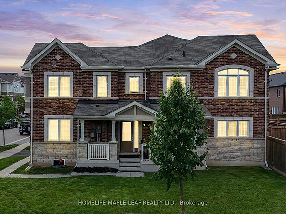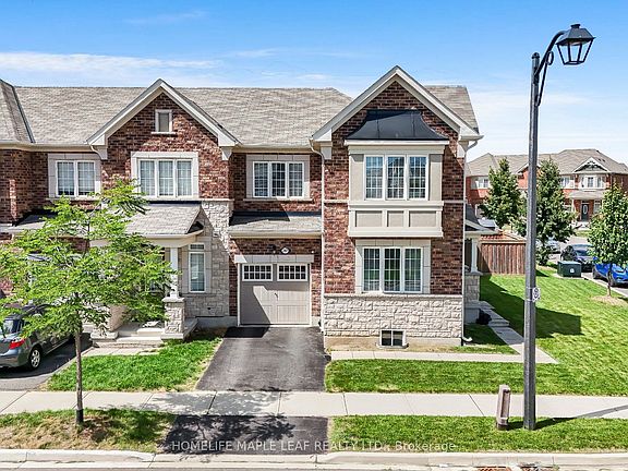 Welcome to 297 Reis Place - A Sun-filled corner home set on a pie shaped over-sized lot. This Mattamy Built free hold property boasts an expansive backyard with a built-in patio - perfect for summer BBQs, outdoor entertaining or simply relaxing in your private oasis. The large front yard adds impressive curb appeal and even more usable outdoor space for your family. Inside, the main floor features a Stylish Flex layout with an Open Concept Kitchen flowing seamlessly into the dining and living areas. The kitchen is thoughtfully designed with quartz countertops, abundant cabinetry and a spacious Quartz center Island. A coffee station with quartz countertop on the main floor near the dining area. A dedicated main-floor office provides the perfect work from home space and can also serve as a fourth bedroom, nanny suite, or recreational room. Upstairs, three generous bedrooms offer both comfort & flexibility. The home is finished with engineered hardwood on the main floor and upper hallway complimented by elegant oak stairs that bring warmth and durability. Oversized windows throughout flood the home with natural light, creating a bright welcoming atmosphere in every room. Perfectly located just minutes from top rated schools, parks, shopping, transit and Milton district hospital. This property blends space, function and lifestyle in one of Milton's most desirable family friendly communities! Exceptionally well maintained, this rare lot with its outstanding layout is a true standout opportunity. Don't miss your chance to say 297 Reis Place Home!