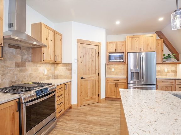 Mountain viewsPrivate wooded lotDouglas fir finishesOpen kitchenCustom lighting fixturesCustom alder cabinetryBrand-new ge appliances