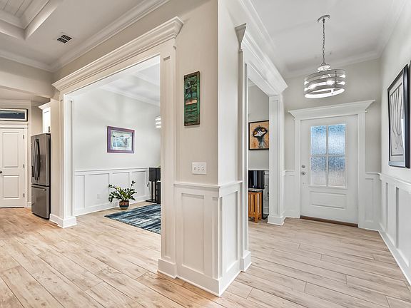 Built in 2022 this gorgeous home is located in walking distance of St. James Bay Golf & Pickleball Resort. 3 bedrooms, 2 baths, 1835 sq. ft., Open floor plan with stunning kitchen, granite counter tops, SS appliance package, wood plank tile flooring throughout, metal roof, screened back porch and open front porch. Loads of windows looking over golf course and large pond. Spacious Master suite, master bath is luxurious with oversized tiled shower, double vanities, and lg. walk in closet. Homeowners in St. James Bay community have access to a private park located on the water, perfect for fishing, grilling, and family gatherings.