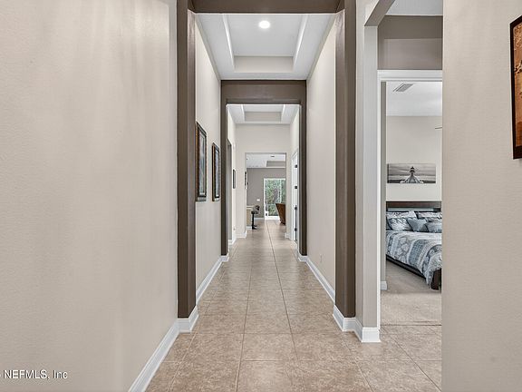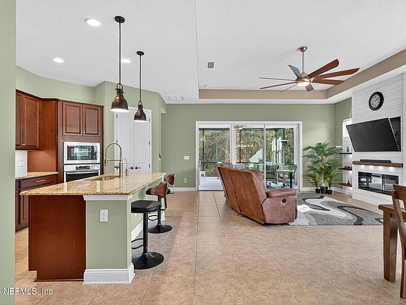 Discover resort-style living in this upgraded ICI-built Sienna model on a quiet cul-de-sac surrounded by preserve. This 3BR + office, 2.5BA, 3-car garage home offers 2,069 sq ft of open living space with custom upgrades throughout. The gourmet kitchen features granite countertops, stainless appliances, a walk-in pantry, and a large island. Relax in the spacious living room with shiplap accent wall and fireplace, or unwind in the primary suite with walk-in closet and spa-like bath. Enjoy Florida living year-round in the expansive 38' x 21' screened lanai with full outdoor kitchen, covered dining, and hot tub zone—all overlooking the peaceful preserve. Located near Pine Island Academy, Crosswater Park, and Nocatee amenities including water parks, fitness trails, kayak launches, and more.