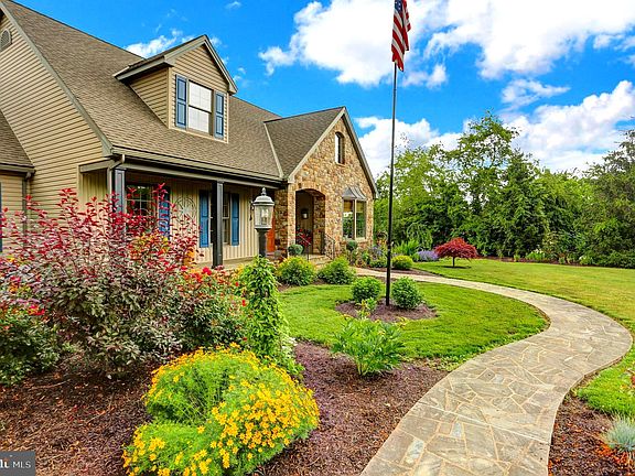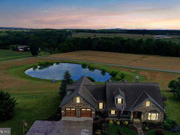 Welcome to Wildflower on Winding, a 43-acre farm with a stunning home, a sizable stocked pond, and frontage along the flowing Conewago Creek. This property is meticulously maintained and set back a long sensored driveway with lush landscapes, a vegetable garden, ornamental fruit trees, rolling green lawns, and fields of soy, bean, or wheat crops. There is a 45x85 bank barn and a 60x40 metal shop with three 14' overhead doors, including electric openers. Plenty of room for your RV, tractors, or equipment. This custom home is a true example of simplistic elegance. Stunning Brazillian cherry floors. Plenty of windows, allowing the natural light to enter. A foyer with a soaring ceiling and dramatic 12-light chandelier, complete with an electric hoist to raise and lower for convenience. A chef's kitchen, designed to be the heart of this home, includes a fireplace featuring custom stonework from Grimm Brothers. All appliances are high-end stainless steel, a five-burner professional gas range with a pot-filler, a Thermodor oven & warming drawer, custom cabinetry & granite surfaces. This area also accesses the upper balcony. Picture yourself enjoying your morning coffee with unobstructed panoramic views of the rural countryside. The house offers over 6,800 SF finished living area, with three bedrooms on the main level including a primary bedroom suite with ensuite, three additional bedrooms plus an office on the second level, and for those that host guests or have extended family, the lower level is completely finished with separate living quarters. Including a second kitchen featuring a marble backsplash and a custom live-edge dining area, a stunning contemporary bedroom, a full bath, and a large recreation room with a wood-burning stone fireplace, all to be enjoyed with the comfort of radiant heated floors. This level walks out to the extended hardscape courtyard. Relax and enjoy the sights & sounds of the waterfall at the 20x16 Koi Pond, or enjoy a leisurely paddleboat ride on your private pond, stocked with plenty of bass, crappie & catfish. The home is perfect for entertaining or everyday living. There is always plenty to do here at Wildflower on Winding. Farming, hunting, riding, kayaking, fishing, or enjoying the wildlife that makes frequent stops, such as whitetail deer, turkey, fox, ducks & geese. The property is also enrolled in the Clean & Green program for tax-saving benefits. One would be hard-pressed to find a property with such a serene setting, with an elegant dream home perched in the middle of fourth-generation farm fields. Centrally located just minutes to Hanover & Gettysburg, 30 minutes to the Maryland state line, and one hour to Lancaster, PA or Baltimore, MD. Shown by appointment only.