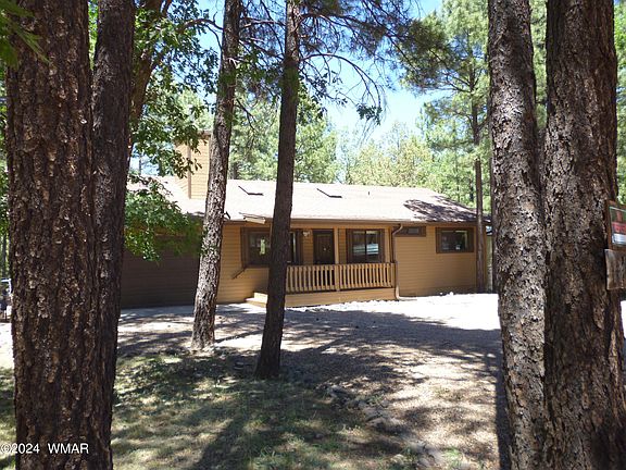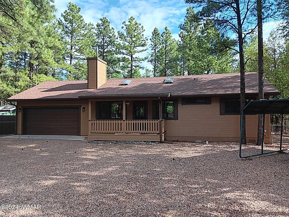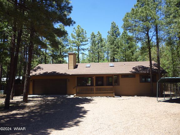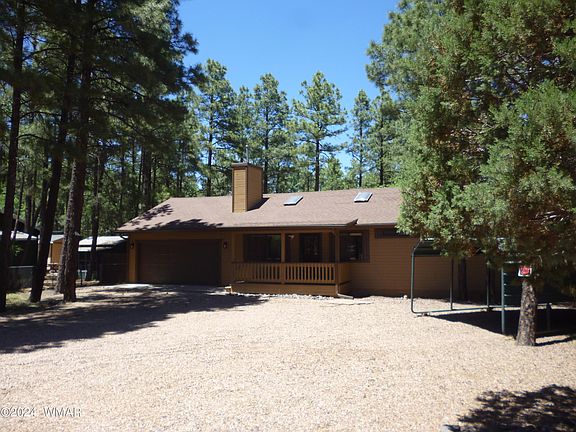 Great 2 bed, 2 bath home in the pines. Close to Rainbow Lake and no HOA! Recently the exterior of the home has been painted and some new flooring installed. The home features lots of natural light with the skylights in several of the main rooms, 2 car garage with lots of shelving and storage, a carport, RV hook-up and waste line, workshop with sink in the garage, insulated shed for storage or projects, fire pit and a huge deck in the back yard for all of your entertainment needs. Completely fenced in backyard for all of your animals. Close to all the recreational activities that the White Mountains offer! The home is being sold partially furnished. Come check out this home today!