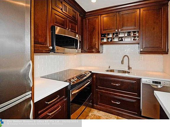 Stunning decorator model... Updated and sophisticated, with east river and garden views! This home has a new gourmet kitchen and bath, stainless steel appliances and quartz counter tops. Low maintenance fee includes high-speed internet and Direct TV. River Shores is a pet-friendly community and can be rented right away! minutes to the beach, shopping, airport, and the action on Wilton Drive. You will love living here!