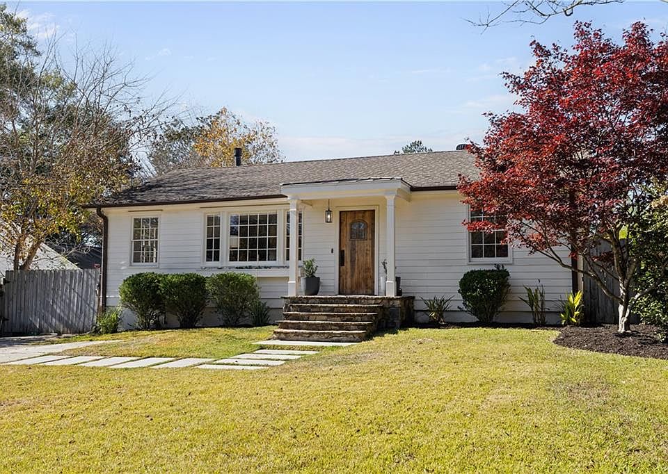 The most perfect Scandinavian inspired renovation awaits behind a charming bungalow facade featuring luxurious, light colored wide plank engineered hardwoods throughout. An open concept floor plan allows for seamless flow between the fire-side family room and vaulted designer kitchen that showcases creamy white cabinets, stunning quartz countertops and backsplash, an adjacent dining room + an oversized bar area large enough for both a morning coffee station and/or evening beverages. Custom double iron doors lead outside to a delicious deck and on to a perfect backyard and play area. From the kitchen a hallway leads to a laundry room with amazing storage cabinets and another door to the back porch. The primary suite is engulfed with natural light and was renovated this year - with neutral, soothing colors and modern, warm design in mind. The bathroom features wood vanities and storage and an oversized shower and jetted soaking tub + a walk-in closet. Two additional generously sized bedrooms share a modern bathroom. This home is located on one of the best streets in Ashford Park - just moments to many shops and restaurants on Dresden and in Downtown Chamblee. Minutes to MARTA, Whole Foods and more
