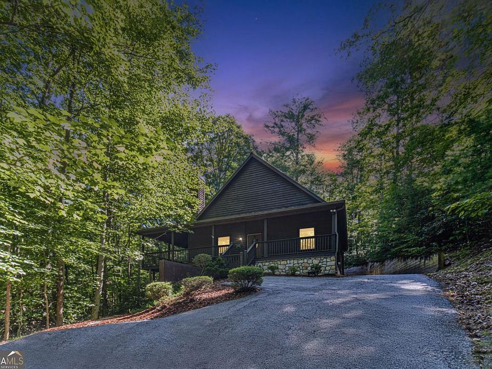 The mountains are calling, and I must go! Now is the perfect time for fall festivals, visits to apple orchards and pumpkin patches, watching the leaves change, and exploring the North GA Mountains with its trails and waterfalls. This adorable, iconic cabin sets a cozy mood for all things mountain-related. Whether you're snuggled up by the wood-burning fireplace with a good book, enjoying the breathtaking mountain views and sunsets under a warm, thick blanket in the crisp fall air, or relaxing in the hot tub while snowflakes gently fall- with seasonal mountain views this home truly shines year-round. Just a short drive to Helen or Cleveland, you'll find plenty of fun, dining, and shopping options to explore. But once you're here, you might never want to leave. This charming, authentic wood cabin (no drywall here!) features three levels, four bedrooms (the fourth bedroom is a flex room with no window but does have a closet), three full bathrooms, two spacious gathering areas (great room or game room), an open kitchen and dining space, and a large covered porch that wraps around half the house. It's fully furnished, so everything stays, making it easy for you to move right in with your belongings and linens. The kitchen features beautiful granite countertops and an Italian stainless steel sink with all appliances included. The primary suite on the main level offers access to the covered deck and hot tub, a relaxing soaking tub, and a separate shower. Upstairs, you'll find a roomy loft bedroom with a private ensuite bathroom. The terrace level has a convenient jack-and-jill setup plus a generous gathering space perfect for a pool table or a secondary family room with a bar area, a laundry room, and access to a covered patio- great for outdoor gatherings. Not only are these hills alive with the sound of music, but this home will bring a joyful melody to your heart. It's a wonderful place to call home, where you can enjoy the changing seasons, gather, relax, and with loved ones share with others. Out of all the cabins in all the towns in all the world, you'll be happy you visited mine. Special features include: 2 Trane HVAC systems only 3 years old, exterior painted in 2021, deck and chimney painted in 2024, handicap accessible ramp to deck for easy access with plenty of level parking space at ramp level, security system, Trex front entrance steps, reinforced deck and retaining wall, and designer custom window treatments throughout.