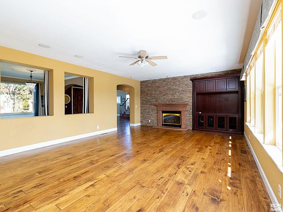 SELLER WILLING TO OFFER INTERIOR PAINT CREDIT WITH ACCEPTABLE OFFER. 2970 Stonebridge Trail welcomes you into the exclusive and coveted gated Arrowcreek Community. Surrounded by the gorgeous Sierra Nevada mountains, 21 miles of private walking and hiking trails awaits you, along with a dual championship private golf course. While only being 10 minutes from an abundance of South Reno shopping, 15 minutes from Mt. Rose ski resort and less than 30 minutes from majestic Lake Tahoe., No detail within the home was overlooked, including the striking hickory wood flooring and massive granite kitchen island, making entertainment possibilities endless. Guests will not want to leave after they discover the ground floor ensuite as well! The primary suite is what really sets the stage for relaxation, boasting a gas log fireplace, heated travertine tile, soaking tub and enormous walk-in shower. After a beautiful day at the golf course (membership separate) head on over to the clubhouse and enjoy all of the HOA included resort-like amenities. The perfect end to your day will undoubtedly be catching a water-colored sunset from Stonebridge's ornate balcony.