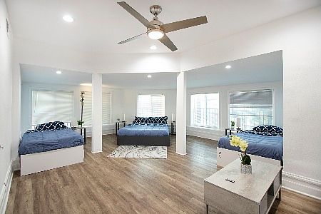 Tucked away in the heart of vibrant Koreatown, this stunning 3-bedroom, 3-bathroom home offers the perfect blend of luxury, comfort, and convenience. Spanning an impressive 2,400 square feet, this fully renovated and meticulously furnished residence is move-in ready and designed for modern living. From the moment you step inside, you'll be greeted by sleek, contemporary finishes and thoughtfully chosen furnishings that elevate every corner of the space. The open-concept layout flows effortlessly, creating an ideal environment for both relaxing and entertaining. Large windows bring in abundant natural light and frame breathtaking views of downtown Los Angelesespecially captivating at sunset. The gourmet kitchen is outfitted with all modern appliances and ample counter space, making cooking a pleasure. Central air conditioning and heating ensure year-round comfort, while the separate laundry room adds extra convenience to your daily routine. Each of the three bedrooms is generously sized, with walk-in closets providing plenty of storage. The master suite is a true retreat, featuring a private en-suite bathroom, a spacious walk-in closet, and a private balcony where you can unwind and take in the city skyline. With its unbeatable location, sweeping views, and luxurious amenities, this Koreatown gem is a rare find. Whether you're hosting friends or enjoying a quiet evening at home, this space is designed to fit your lifestyle. Welcome home.
