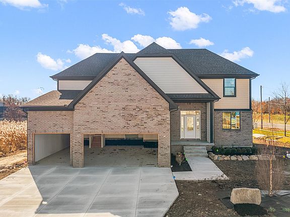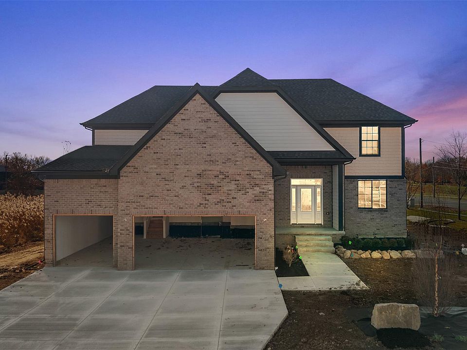 This colonial in Hunter Bay Estates combines architectural character with modern livability, beginning with a two-story foyer that brings in natural light and leads to wide arched openings that give the main level a cohesive, upscale flow. The open kitchen features white cabinetry, a large center island, and a walk-in pantry, and it connects seamlessly to the dining area and family room for everyday living and entertaining. A dedicated first-floor study, framed by an arched entryway, provides a private workspace away from the main living areas. Upstairs, all four bedrooms include walk-in closets, including the spacious primary suite with two separate walk-ins and an en-suite bath designed for dual vanities, a soaking tub area, and a walk-in shower. An upstairs laundry room and built-in hallway storage add convenience, while the deep 3-car garage and full basement provide exceptional utility. The exterior presents a brick facade with clean siding lines and an extended concrete driveway., this home delivers premium new construction in Hunter Bay Estates and allows buyers to secure a high-end build without the wait.