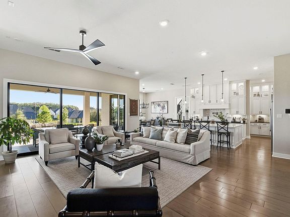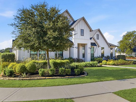 Exquisite modern farmhouse on a 1-acre lot featuring 6 bedrooms, 5.5 baths, a 4-car oversized tandem garage with an electric vehicle charger, and a CASITA WITH A PRIVATE FULL KITCHEN, WASHER AND DRYER, AND PORCH. The interior combines timeless elegance and modern comfort with designer finishes and expansive sliding glass doors that open to a beautifully landscaped backyard. The gourmet kitchen showcases Monogram appliances, designer-crafted ceiling-height cabinetry with ambient lighting above and below, an oversized island, pot filler, separate drink cooler, and a luxury walk-in pantry with custom cabinetry. Pre-wired for a full sound system extends thru the living and the movie room. The primary suite offers a spa-inspired retreat with a freestanding tub, dual shower, double vanities, and two custom walk-in closets. A covered luxury patio with a designer ceiling overlooks a fire pit, lush gardens, and space reserved for a future pool—an exceptional blend of beauty and functionality.