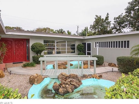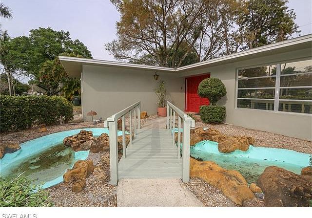 Fantastic location for this 3 bedroom, 2 bath home with tons of storage and wonderful updates. Charming bridge and pond at the entrance welcomes your guests and makes this property truly unique. There is a separate formal living room and family room so there is plenty of space to entertain. There is an eat in kitchen as well as a formal dining room. The three spacious bedrooms have ample closet space and the master bedroom, has an ensuite that was also updated. The kitchen is centrally located in the house and over looks the family room. A screened lanai is great for those breezy Florida nights and a bonus building that can be used for storage, an air conditioned studio or a kids play house is a great addition! Large laundry room, and 2 car garage complete this great property.