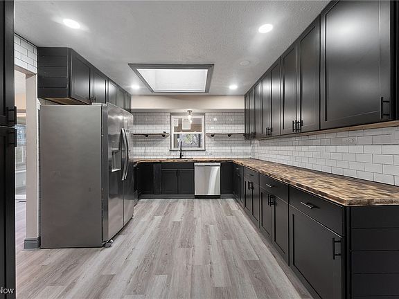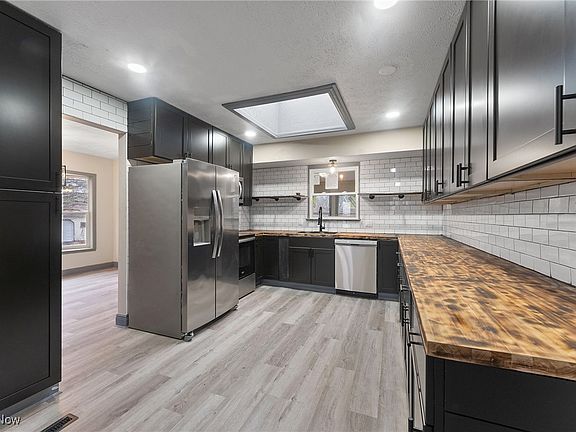 Updated Listing Description: This beautifully updated 3-bedroom, 2-bathroom split-level home is conveniently located near parks, schools, shopping, highways, and more! Step into the spacious living room, which flows seamlessly into the dining area and fully remodeled kitchen, creating an open and inviting space. The kitchen has been completely updated with modern finishes, making it a dream for cooking and entertaining. Sliding doors off the dining room lead to an enclosed porch, which opens to a covered deck—perfect for hosting gatherings or relaxing outdoors! Upstairs, you’ll find three spacious bedrooms and a beautifully renovated full bathroom. The lower level boasts a cozy second living area with a fireplace and an additional fully updated bathroom. The partially finished basement provides plenty of storage and extra living space potential. This home also features a two-car attached garage and an oversized two-car detached garage, with access to two driveways—one from Skelton Ave and one from Mogadore Rd.