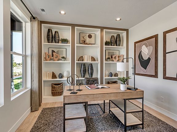 Incredible Brighton Plan Model Home! This exquisite home features a state-of-the-art chef's kitchen complete with quartz countertops. Enjoy natural light through a grand 10' sliding glass door that seamlessly merges indoor and outdoor spaces, and entertain or unwind on the covered patio that's just on the other side! Cozy up by the fireplace that makes a statement. Experience unparalleled comfort and design with every detail thoughtfully imagined for modern living. Furniture to be sold on separate bill of sale for $10,000.