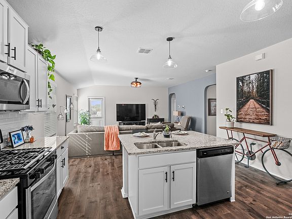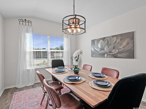 Nestled in the highly sought-after Copper Canyon neighborhood, this beautiful one-story home offers the perfect blend of comfort and style. Step inside to discover an open concept layout that seamlessly connects living spaces, making it ideal for both relaxation and entertaining. With 3 bedrooms and 2 full baths, this home also features a formal dining room that could also act as a study or flex space, perfect for adapting to your needs. The heart of the home is the kitchen, complete with granite countertops, a subway tile backsplash, and a central island. Enjoy gas cooking and stainless steel appliances. The primary bedroom is thoughtfully separated from the other bedrooms, offering an added sense of privacy. The primary bath boasts a double vanity, a stand-alone shower, and a garden tub-a perfect retreat after a long day. Step outside to your own outdoor haven with a covered back patio overlooking a large, flat backyard. The home also comes equipped with a sprinkler system and water softener for added ease. No city taxes! Top-rated Comal ISD! This is where your next chapter begins!