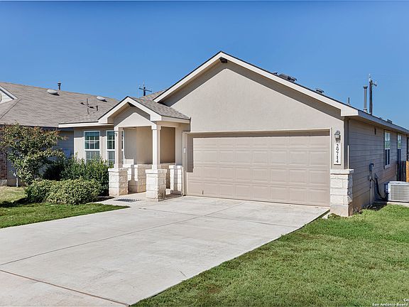 Welcome home to this single story turn key 4-Bedroom home located in Amenity rich Copper Canyon Subdivision in Bulverde! This Thoughtfully designed 4 bedroom, 2 bathroom Single-story home offers 1901 square feet of modern MOVE-IN-READY living space! The Spacious main living area connects seamlessly to the island kitchen, equipped with ample counter space for meal prep or entertaining. The private primary bedroom includes a large walk in closet, double vanity and separate tub/ shower combination. The three secondary bedrooms are well proportioned offering comfortable and defined living areas. Enjoy the Texas Weather on the covered patio overlooking the fully fenced backyard. Residents of the Copper Canyon community benefit from an outstanding array of shared amenities, including a community pool, sports court, and neighborhood park/playground. Home will sell with appliances, solar panels to be paid off and transferred to new owner at closing.