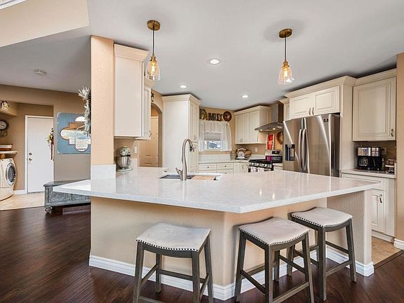 Beautifully updated North Escondido 3 bd, 2.5 ba, 1582 sq ft home located in the coveted gated community of the Treasures at Castle Creek!! This property features custom kitchen cabinets, SS appliances, gorgeous granite counter tops, huge kitchen island that could easily seat 5 & coffee bar! Incredible contrasting dark hardwood floors, modern recessed lighting, updated light fixtures & deep kitchen sink with grate & cutting board!! Vaulted living room ceilings, cozy fireplace and tons of ambient light!! Hardwood floors continue up the stairs in common area and all 3 bedrooms!! Nice sized primary suite with primary bath, dual sinks, huge mirror, shower & tub combo! Standard sized secondary bedrooms with shared full bath including updated vanity. Perfect back yard for entertaining!! Large sitting area just out the sliding door, firepit, grill island, multiple garden/flower beds and secondary elevated sitting area!! LOW TAXES LOW HOA!! HOA sponsored annual Breakfast with Santa at the pool!! Easter Egg Hunt!! Bi-Weekly Movie Nights at the Pool when school is out and Annual Ice Cream Social!!