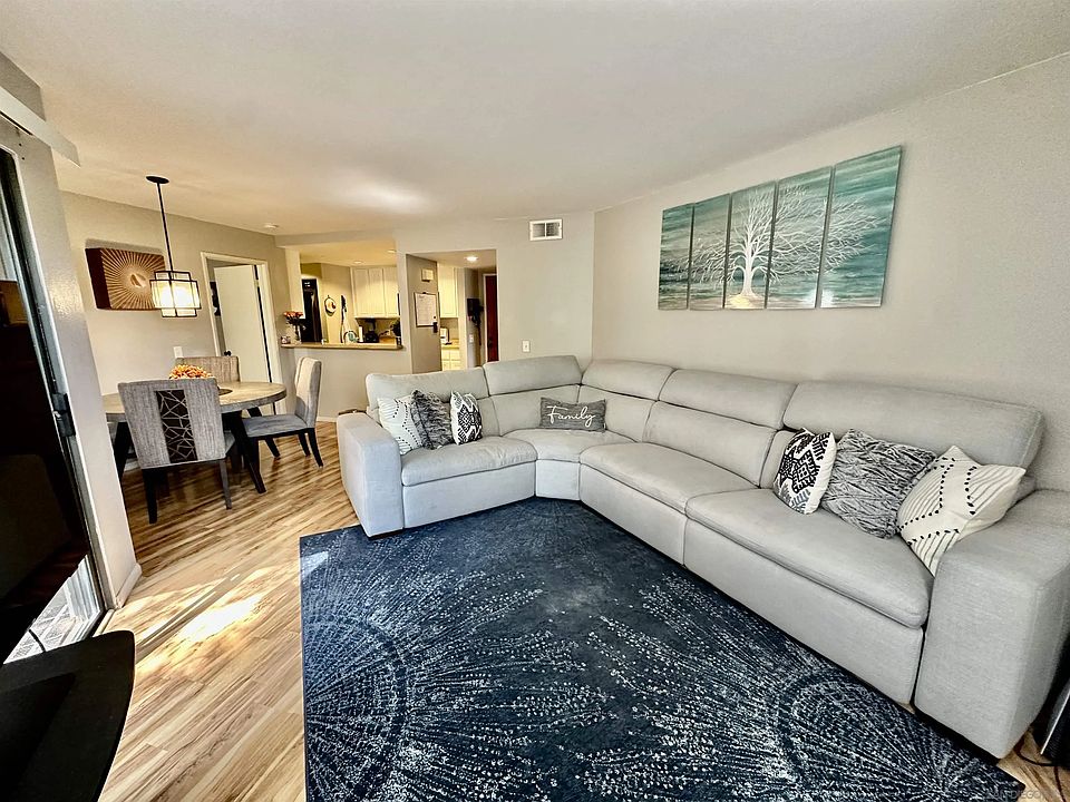 Open Spacious Well Maintained Condo in Private Community of Ranchwood. Newer Appliances, NO STAIRS TO UNIT, Dual Sliding Glass Doors from Living Rm & Primary Suite invite indoor outdoor living. Fireplace in Living Rm, Lots of windows! Bedrooms on opposite sides for privacy. Quiet complex w/ Tennis/Pickleball, Beautiful Pool & Spa, Large Grass Park area w/ Bar BQ's, Carport Parking and storage plus extra uncovered space. Stackable Washer Dryer in Unit. Complex is approved VA/FHA. Enjoy Private South facing Patio!
