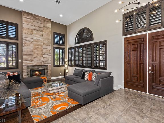 *Spacious Corner Lot centrally located close to Summerlin. Prepare to be amazed!* This immaculate home is not staged, but it is move-in ready!* Illuminating the vaulted ceilings are RH chandeliers that give the instant WOW factor. Rest by the fireplace or cook in your chef-like kitchen with a vast island, granite countertops & stainless steel appliances. So much storage & space in this home** The primary suite is a MUST SEE! *A fully landscaped oasis, with a sparkling pebbletek pool & a built-in BBQ. Entertainment knows no bounds in this home! *A theater room with 4K Dolby Atmos built-in surround sound system & a 130" projector screen.* The garage has a 240V electric vehicle charging outlet. True Smart House features** Security cameras to ensure safety. Security screens on each window that are also solar shades. Plantation shutters.*Solar panels are PAID OFF! **Don't miss the opportunity to own a meticulously maintained and thoughtfully designed residence. This home is a rare gem!