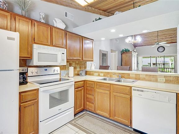 This 2 bedroom, 2 bath condo has it all, including a vaulted ceiling in the living room, giving the condo a spacious open feeling. The kitchen is well equipped and has an eating area as well. The master bedroom has a king-size bed and walk-in closet and a walk-in shower in the master bath. The guest bedroom has a queen-size bed and the guest bath has a tub/shower combo. There is a washer and dryer in the unit and a newer central air conditioning and heating system. The screened lanai has a partial view of the lake, which is great for walking and biking and a partial view of the community pool, which has a barbeque grill, chaise lounges, tables and chairs and a restroom for your convenience. There is a tennis/pickleball court nearby and shopping , dining and specialty shops within walking distance. Naples pristine beaches, Historic downtown, world-renowned restaurants and boutiques, are all within 4 miles of the condo.