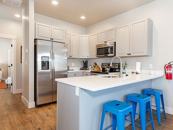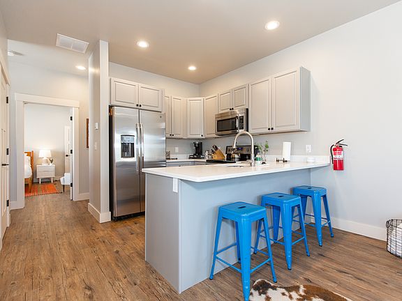 Conveniently located, comfortable one bedroom upper apartment is a great place to call home while in Bozeman. Easy to get anywhere in town with close by access to major arterials and I-90 , this condo is also close by to grocery stores and Outlaw brewing. Fully equipped kitchen makes at home meal prep a breeze. Kitchen is open to living/dining area and nice balcony with southern exposure. There is one bedroom with queen bed and plenty of closet space. AC, internet and utilities are included! There is assigned parking outside and a flight of stairs must be climbed to access apartment. Rent is seasonally adjusted.