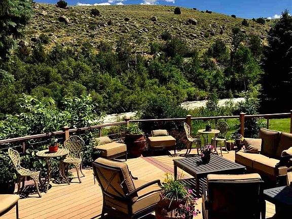 Custom home in Sinks Canyon w/river frontage along the full acreage. Cathedral ceilings, wood floors, fireplace, large windows that face the river & an open floor plan! Gorgeous warm finishes & the southern sun make this home light & comfortable. The kitchen has been remodeled w/new cabinetry, granite counters, high-grade appliances, bar & island. Luxurious master faces the river. Phenomenal mountain views & river ambiance, spacious deck, lush yard, wildlife & vast horizon! Finished 3-car garage & barn.
