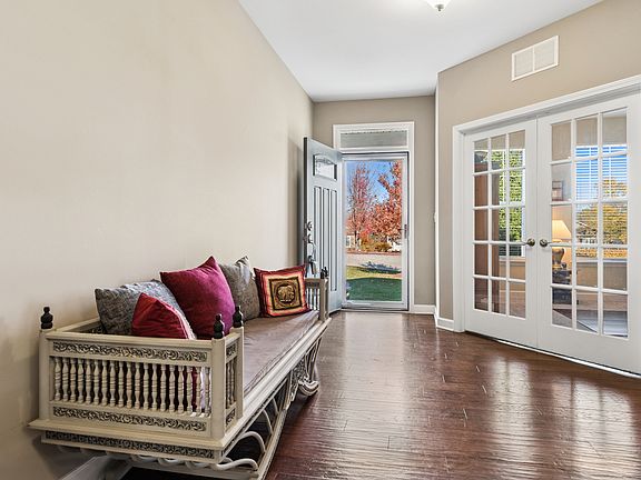 Presenting a stunning property that offers both comfort and style, this Rosewood model home features three spacious bedrooms and two bathrooms. Primary bedroom has private bath with walk in shower and double sinks. The elegant French door office provides the ideal space for remote work or study. The gourmet kitchen boasts high-end stainless-steel appliances, including a refrigerator that is only a year old, sophisticated 42-inch espresso maple cabinetry, a built-in double oven with cooktop, and elegant granite countertops, creating the perfect environment for any culinary enthusiast. The granite kitchen island seats four. Elegant, engineered hardwood flooring runs throughout the main living areas, complemented by solid core doors, nine-foot ceilings, and a cozy fireplace for added warmth and sophistication. The dining room boasts a coffer ceiling. The laundry room/mud room has built-in cabinets and countertops. The full, look-out unfinished basement offers endless possibilities for customization, and has roughed in plumbing for an additional bathroom. Step outside to enjoy a huge Trex deck with a retractable awning for those sunny days, and a stamped concrete patio, perfect for entertaining or relaxing outdoors. The two-car garage has a new epoxy finished floor. This exceptional property blends luxury finishes with practical living spaces, making it an outstanding choice for your next home. It is conveniently located near great shopping centers and easy quick access to I-88 expressway.